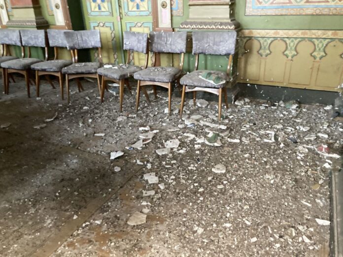 Palatul Administrativ este plin în continuare de fisuri care se întind și pe zeci de metri pe holurile instituției, iar faimoasa Sală Maură, acolo unde se luau deciziile importante pentru destinul gorjenilor, este aproape o ruină. În sala respectivă timpul pare încremenit, la fel ca și praful de pe mese și scaune sau bucățile mari desprinse din tavan.