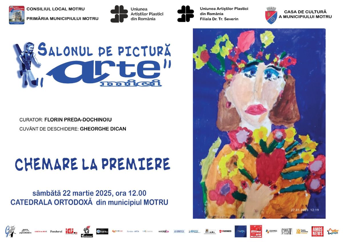Salonul de Pictură „Arte Mici” 2025, unul dintre cele mai prestigioase evenimente dedicate tinerilor artiști plastici, își desemnează câștigătorii în cadrul unei ceremonii speciale, care va avea loc sâmbătă, 22 martie 2025, ora 12:00, în Catedrala Ortodoxă din municipiul Motru.