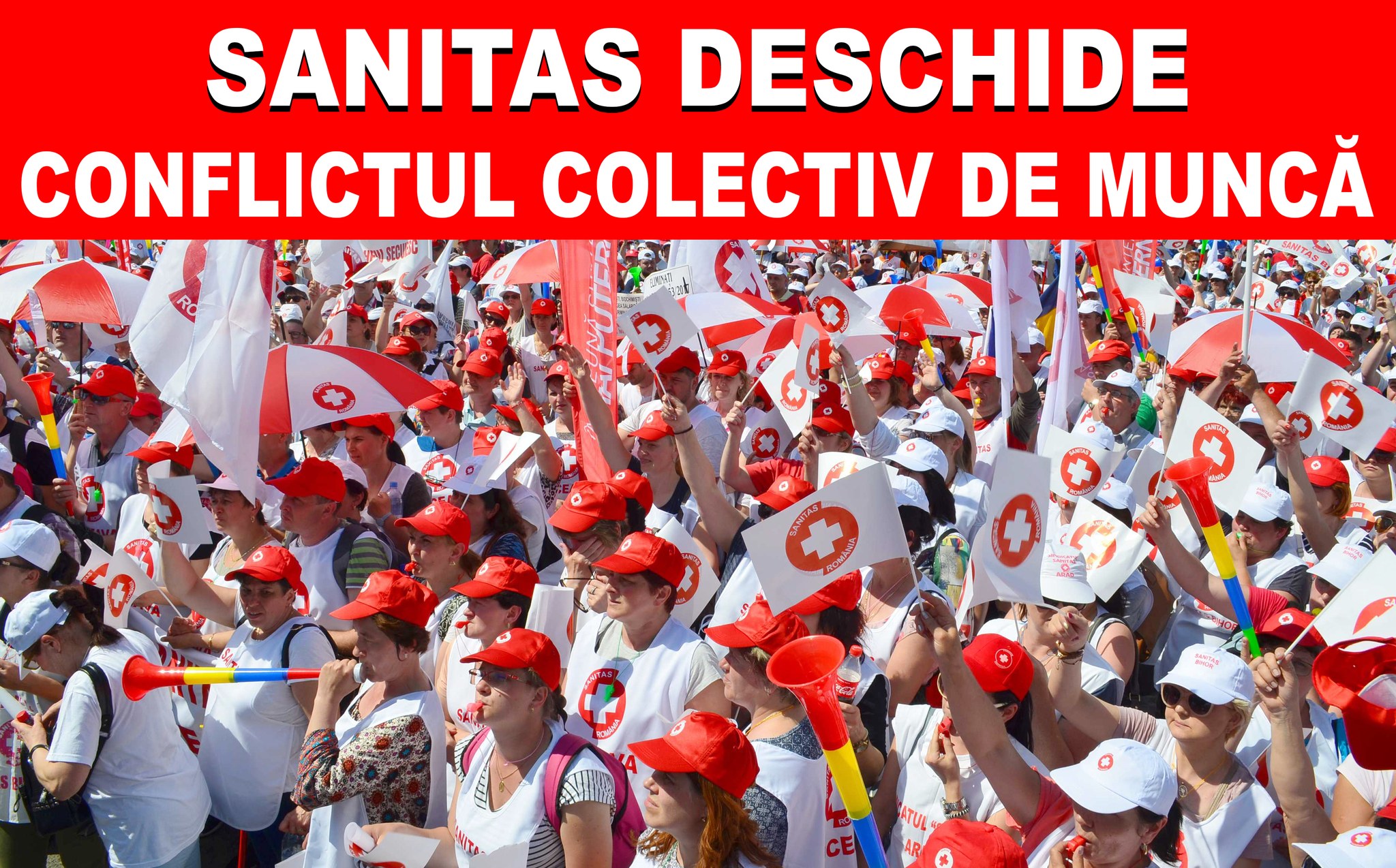 Federaţia Sanitas din România anunţă deschiderea conflictului de muncă pentru ca întregul personal medical, personal nemedical (TESA), personal auxiliar, contractual sau funcţionari publici din DSP, precum şi salariaţi de toate specialităţile din domeniul asistenţei sociale să-şi recupereze drepturile neacordate până acum.