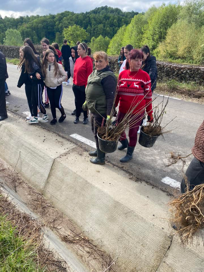 „Săptămâna verde! Educație în natură! Astăzi (n.red. luni) am avut o acțiune de amploare cu elevii din comuna Roșia de Amaradia, cadrele didactice și cu sprijinul domnului Drăgan Vintu, să plantăm puieți de arbori (frasin, paltin și gorun).