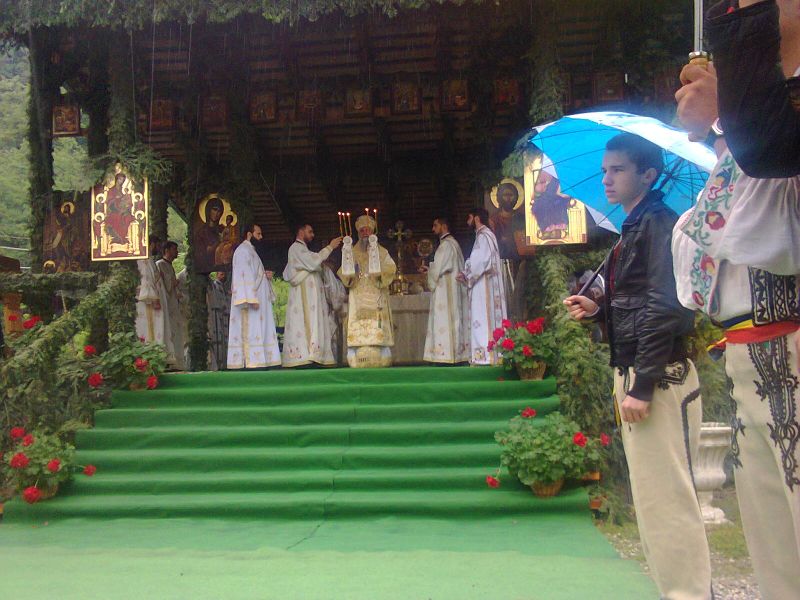 Marți, 3 mai 2016, în cea de-a treia zi de Paști, pe o zi ploioasă și rece, credincioșii sosiţi la Mănăstirea Lainici sau aflaţi în trecere pentru a se închina și pentru a prăznui de ziua Sfântului Cuv. Irodion, supranumit «Luceafărul Olteniei», ocrotitorului spiritual al sfântului lăcaș, cu dăruire au înfruntat vremea neprilenică şi s-au adăpostit sub umbrele în fața altarului de vară din curtea mănăstirii, unde a fost săvârșită Sfânta Liturghie Arhierească de către Înaltpreasfinţitul Părinte dr. IRINEU, Arhiepiscopul Craiovei şi Mitropolitul Olteniei, împreună cu un sobor ales de înalți ierarhi din care au făcut parte: ÎPS Părinte Varsanufie, Arhiepiscopul Râmnicului, PS Părinte Nicodim, Episcopul Severinului și Strehaiei, PS Sebastian, Episcopul Slatinei și Romanaților, PS Gurie, Episcopul Devei și Hunedoarei, PS Emilian Lovișteanul, Episcop vicar al Arhiepiscopiei Râmnicului, împreună cu un sobor de preoți și călugări din Sfânta Mănăstire Lainici, iar cântările liturgice și acordurile la strană au fost asigurate de către Grupul psaltic al Catedralei Mitropolitane «Sfântul Mare Mucenic Dimitrie» din Craiova!