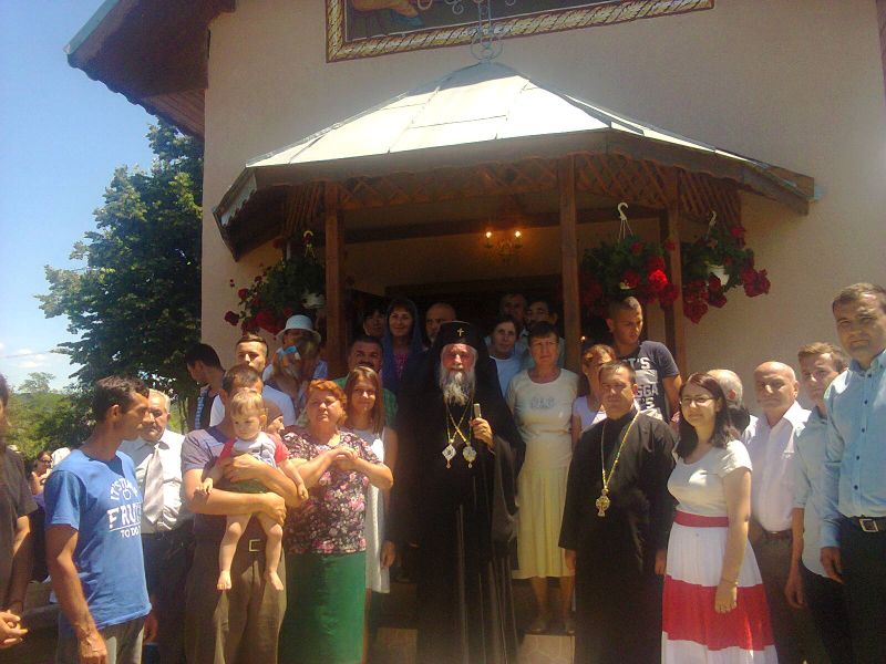 Născătoare de Dumnezeu, iar noi toți am fost «îmbrăcați» în El, în «haina» Lui, și astfel, trăim viața pe acest pământ și apoi continuăm viața în ceruri, acolo unde nu va fi întristare, nici suspin. De aceea, în timpul nostru, din generație în generație oamenii se ostenesc ca să ridice «casă» Lui Dumnezeu, Sfântă Biserică, în care să se roage și să fie aproape de Împărăția Lui Dumnezeu. Ori de câte ori ne rugăm și venim la sfânta biserică, noi mărturisim în «Crezul» nostru aspecte ale învierii morților în viața veacului ce va să fie, credința că suntem cu Mântuitorul Hristos, așa cum El ne-a spus: «Eu voi fi cu voi până la sfârșitul veacurilor»! Așa se face că aici, în această «Poiană a Bisericii», ani de zile, îngerul păzitor al acelei biserici care n-a mai existat în ultimii ani, a rămas aici, pentru că la orice sfințire de biserică lăcașul sfânt primește un înger păzitor, iar acest înger păzitor rămâne aproape de locul sfințirii sfântului altar, până la sfârșitul lumii. Și iată că astăzi, avem această bucurie ca să reînnodăm legătura ce s-a rupt cu timpul pământesc și cu construcțiile pământești care au și ele o vreme a existenței lor. De acum, în biserica dumneavoastră se va săvârși Sfânta Liturghie și întotdeauna, Bunul Dumnezeu va asculta rugăciunile preoților și ale credincioșilor și va fi milostiv tuturor celor care se pomenesc aici, va da daruri duhovnicești, sufletești și trupești celor care se roagă cu credință și care au inima bună, și va primi sufletele celor care se mută din lumea aceasta în viața veșnică, pentru ca legătura să fie întotdeauna neîntreruptă între noi, cei de pe pământ și cei care au plecat în Împărăția Lui Dumnezeu”.