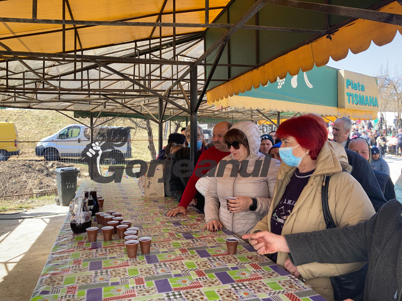 Mulți dintre cei prezenți s-au bucurat și de o porție de păstrăv cu mămăligă oferită gratuit de autoritățile locale, tigăile cu pește sfârâind încă de dimineață. Peștele a fost servit însă de abia la prânz, după ce s-a terminat spectacolul de muzică populară susținut de tinere talente din localitate. Cei care s-au așezat la masă s-au bucurat însă că pe farfurie au avut păstrăv provenit de la crescătoriile din localitate. „Vin de mulți ani la bâlciul ăsta dar vă spun că e prima dată când ni se dă păstrăv de la noi de aici din Tismana. Până acum erau hamzii, macrou, numai păstrăv nu era, deși știu că I se spune și Festivalul Păstrăvului. E foarte bine cum s-a organizat treaba acum”, a spus un localnic. Oamenii au primit și câte un păhărel de vin și toată lumea s-a ridicat mulțumită de la masă în ziua în care a fost dezlegare la pește în postul Paștelui. Primarul Narcis Petre Remetea a fost nevoit să suplimenteze cantitatea de pește oferit gratis pentru că numărul doritorilor a fost unul neașteptat de mare. Vremea a făcut ca oamenii să poată veni foarte mulți la bâlci și, ca urmare, și cei care au trecut pe la tigăile cu pește au fost la fel de mulți. „Avem 900 de porții față de ceea ce anunțaserăm inițial pentru că participarea este extraordinar de mare. Este prima sărbătoare a primăverii, comercianții și lumea sunt dornici de libertatea de după pandemie și ajută și vremea. E o vreme extraordinară. Față de alți ani acum chiar a fost păstrăv în farfuriile oamenilor și este păstrăv provenit de la păstrăvăriile noastre din zona Tismana. Ne bucurăm că sunt atât de mulți participanți”, a menționat edilul.