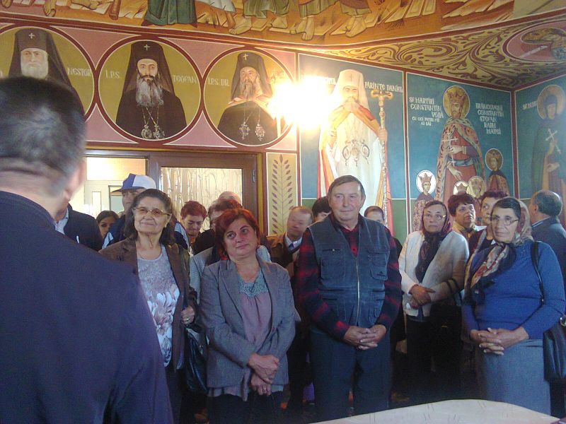 Primiţi sub razele unui soare de toamnă mângâietor şi blând, în ziua de 15 octombrie 2017, în Duminica 21-a după Rusalii, în prezenţa d-nei Primar, Cristina Cilibiu şi a d-lui Petre Rădulescu, Preşedintele Ligii Pensionarilor din Gorj, oaspeţii de la Tismana, având-o «călăuză» bine orientată şi mereu pliată pe ideea de dialog sincer şi deschis, pe d-na Rodica Neamţu, au fost întâmpinaţi cu aplauze şi cu urarea de «BUN VENIT», conform tradiţiei noastre, «cu pâine şi sare», în faţa Casei Parohiale, dar, mai ales cu bunăvoinţă şi cu multă dragoste, în spiritul ospitalităţii noastre gorjeneşti şi româneşti. Fără îndoială că ideea unei astfel de întâlniri, chiar şi sub titulatura unui «schimb de experienţă» sui generis este foarte bună din perspectiva cunoașterii, prin intermediul culturii, al dialogului şi al pelerinajului la unele lăcaşe de închinăciune unde Dumnezeu revarsă Harul Său Sfânt, iar, pe de altă parte, o astfel de întâlnire înlătură în cea mai mare măsură posibilitatea însingurării apăsătoare a oamenilor la o anumită vârstă înaintată. Nu ştim în ce măsură organizatorii acestui program au avut în vedere conceptul de «schimb de experienţă» în sensul clasic al termenului, dar, el a fost gândit și i s-a dat viață prin strădaniile şi chiar prin dăruirea unor oameni cu suflet, inclusiv a doamnei primar, Cristina Cilibiu, care a oferit o sumă frumoasă din venitul personal, pentru a sprijini mai mult acţiunea parohiei, întreaga activitate, care a cuprins, inclusiv o «tombolă» cu daruri pentru toţi participanţii, spre delectarea celor direct implicaţi, în aşa fel încât şi tinerii prezenţi la festivitate să conștientizeze rolul formator al culturii și importanța tradițiilor și particularităților culturale ale fiecărui colţ al Judeţului Gorj, al poporului în mijlocul căruia te-ai născut și care te reprezintă oriunde în lume!