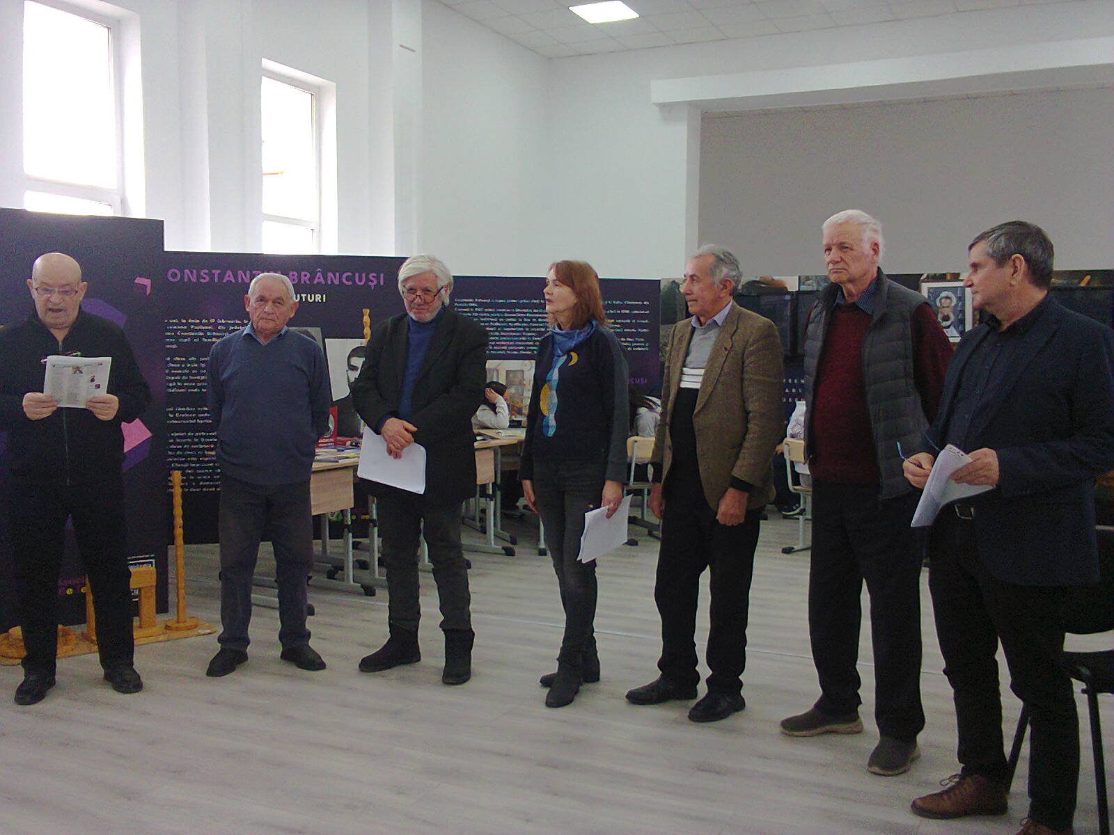 Am pornit de la această naraţiune introductivă, pentru că la Liceul Tehnologic «Constantin Brâncuşi» din Peştişani, cred că s-a desfăşurat cea mai reuşită acţiune omagială cu un mare conţinut de idei, onorată de prezenţa unor oameni deosebiţi şi pasionaţi de ceea ce fac în conturarea imaginii genialului «părinte al sculpturii moderne» şi de ilustrarea modestă şi sinceră a semnificaţiei acestei sărbători. În ordinea luărilor de cuvânt, voi începe cu prezentarea în întregime a comunicării domnului Inspector Şcolar General, prof. Marius Staicu, pentru acurateţea şi sinceritatea celor spuse, printre altele: ,,Sărbătorim, astăzi, 150 de ani de la naşterea marelui sculptor Constantin Brâncuşi, fiu al Hobiţei, al Gorjului şi al României. Ne aflăm aici, la Peştişani, în locul unde a început povestea unui copil care avea să schimbe pentru totdeauna arta modernă. Din simplitatea satului românesc, din liniştea lemnului şi a pietrei, Brâncuşi a creat un limbaj universal cunoscut. A avut curajul să lase în urmă forma pentru a căuta esenţa şi a reuşit! Brâncuşi nu a fost doar un sculptor, a fost un vizionar, a demonstrat că tradiţia nu ne dictează, ci, ne explică faptul că rădăcinile adânci pot susţine zboruri înalte. Astăzi, la 150 de ani de la naşterea sa, nu celebrăm doar un artist, celebrăm o idee, aceea că dintr-un sat mic din Gorj poţi ajunge să modelezi conştiinţa artistică a lumii. Avem datoria să ducem mai departe această moştenire prin educaţie, prin cultură, prin respect faţă de valori! La mulţi ani, Constantin Brâncuşi, la mulţi ani spiritului creator românesc, şi am să închei spunând că apreciez ideea colegilor mei de la liceu de a invita aici pe domnul Avramescu şi să creeze, să aibă un atelier de creaţie cu elevii de la Liceul Tehnologic, pentru că este o idee minunată şi aşa cum s-a născut Brâncuşi aici, putem descoperi că se mai naşte încă un mare artist la atelierul de creaţie de la Liceul Tehnologic Peştişani, poate, aşa cum s-a născut Brâncuşi aici, o să descoperim că se mai naşte încă un mare artist, iar, acest atelier încearcă să descopere artistul de la Liceul Peştişani! Mulţumim Domnule Avramescu! Mulţumesc, pot să spun doar acum! Sigur, despre Brâncuşi, oricare dintre noi, specialist sau nespecialist, putem vorbi mult, pentru că am crescut cu Brâncuşi, iar, ceea ce a lăsat el în urmă ne-a marcat şi ne marchează viaţa în fiecare zi! Până la urmă, Gorjul şi Peştişaniul sunt recuoscute în lume, poate, datorită lui Constantin Brâncuşi” a concluzionat domnia sa! În continuare, poate cel mai cunoscut şi mai respectat brâncuşiolog al Gorjului şi printre cei mai valoroşi ai ţării, domnul prof. univ. dr. Ion Mocioi a pornit de la faptul că: ,,E o zi mare