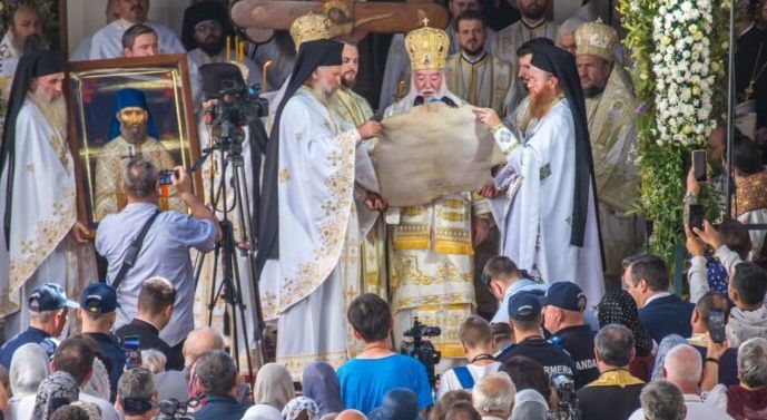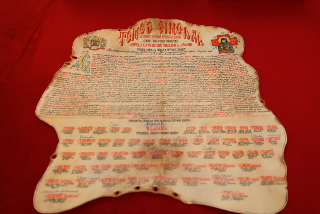 Pentru că în ziua de 21 septembrie 2025, în Duminica după «Înălţarea Sfintei Cruci», cel mai vechi lăcaş de cult din Ţara Românească a trăit cu emoţie slujba solemnă a Proclamării locale a canonizării «Sfântului Cuvios Mucenic Gherasim de la Tismana», oficiată de către un sobor ales de ierarhi ai Bisericii Ortodoxe Române, sub protia Înaltpreasfințitului Părinte dr. Irineu, Arhiepiscopul Craiovei și Mitropolitul Olteniei, în prezenţa credincioşilor veniţi de pretutindeni, vom consacra această ultimă parte a expunerii noastre, momentului de vârf al manifestării, când a răsunat glasul de stentor duhovnicesc erudit al Preasfinţitului Părinte Nicodim, Episcopul Severinului şi Strehaiei, care a dat citire Tomosului Sinodal al Bisericii Autocefale Române, pentru Proclamarea canonizării «Sfântului Cuvios Mucenic Gherasim de la Tismana», adresat Preasfântului şi iubitului cler, cinului monahal, şi dreptcredincioşilor creştini din cuprinsul Patriarhiei Române!