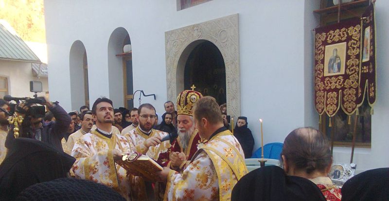 La sfârşitul Slujbei Euharistice, Mitropolitul Olteniei a vorbit despre fundamentul creştin al Praznicului Naşterii Domnului, arătând că scopul venirii Fiului Lui Dumnezeu în lume este în primul rând de a ne împăca pe noi oamenii cu Tatăl cel Ceresc, de a preface firea noastră cea căzută sub stricăciune şi descompunere, de a dobândi iarăşi intrare în Raiul cel pierdut de strămoşii noştri Adam şi Eva, prin ridicarea tuturor din pântecele iadului. “Într-un cuvânt, Fiul lui Dumnezeu S-a întrupat din iubirea Sa negrăită pentru noi. Spunem că El a venit pentru că ne-a iubit şi ne iubeşte în continuare. Prin urmare, nu păcatul este acela care a determinat Bunătatea Lui Dumnezeu că vine în lume, ci, iubirea Lui cea negrăită, aşa cum ne spune Sfântul Ioan Evanghelistul, că «Dumnezeu, atât de mult a iubit lumea, încât a trimis pe Fiul Său să se facă Om, să Se răstignească şi să Învieze, ridicându-ne pe toţi din moarte la viaţă». Această minune dumnezeiască a Naşterii Domnului a schimbat lumea, a schimbat cursul lumii, a schimbat mişcarea lumii, pentru că păcatul dăduse o mişcare cu totul străină existenţei umane! Timpul pe care Dumnezeu l-a ales este, pe de o parte, acela al conştientizării lumii de necesitatea mântuirii. Din partea lui Dumnezeu este timpul în care cererea omului a fost mai adâncă şi mai profundă, pentru că răutatea, atât de mult cuprinsese firea umană, încât, prin orice clipă de întârziere a iubirii lui Dumnezeu, ar fi fost pusă în pericol existenţa însăşi. Aşadar, dacă Dumnezeu ar fi întârziat trimiterea Fiului Său în lume, spunem aceasta numai ipotetic, omul ar fi ajuns iarăşi în neexistenţa din care a fost luat. Aşa se face că, Dumnezeu a pregătit venirea Sa «în multe feluri şi în multe chipuri», după cum ne spune Sfântul Apostol Pavel”, a subliniat ÎPS Părinte Mitropolit, dr. Irineu. În încheiere, Arhieria sa le-a vorbit credincioşilor despre Sf. Cuv. Nicodim cel Sfinţit, arătând că Dumnezeu a lucrat în mod desăvârşit printr-însul, fiind legat întru totul de Naşterea Mântuitorului Hristos. El este legat de acest moment cosmic prin care Dumnezeu deschide larg capacitatea existenţei spre fericire, spre viaţă. “De aceea, gândind la aleasa vieţuire a Sfântului Nicodim, constatăm faptul că nu mai există o întoarcere la lucrurile pământeşti într-o ciclicitate efemeră, ci o direcţie precisă spre Mântuitorul Hristos, care spune lămurit: «El sunt Calea, Adevărul şi Viaţa»! Iar, pentru că ne atrage Dumnezeu acum, chiar şi timpul se dovedeşte cel mai înţelept învăţător, care ne arată că există Dumnezeu, că există viaţă veşnică! Timpul nu poate să fie oprit niciodată, pentru că este creat de Dumnezeu, pentru că ascultă de Dumnezeu! Cei care încă n-au înţeles acest lucru, să înveţe de la timp, că dacă ei ar putea să-l oprească, ar rămâne permanent legaţi de lumea aceasta, şi, Doamne-fereşte, ce rău ar fi! Aşadar, numai în «mişcarea» aceasta spre Împărăţia Cerului, noi ne «creştem» aici, ne desăvârşim şi ajungem precum sfinţii, în Împărăţia Lui Dumnezeu! Facă, dar, Bunul Dumnezeu, ca ziua de astăzi, a doua de Crăciun, a Naşterii Domnului, a Soborului Maicii Domnului şi a Sf. Nicodim, să ne fie un prilej de aducere aminte de mântuire şi de viaţă veşnică, Amin”! După Sfânta Liturghie şi după rostirea cuvântului de învăţătură, ÎPS Părinte Irineu, înconjurat de soborul de călugări, preoţi şi de diaconi, a săvârşit slujba de sfinţire a Aghiasmei celei mici, în faţa bisericii, iar în final, în fruntea cinului monahal, a clerului şi a poporului dreptcredincios, Mitropolitul Olteniei a ocolit sfântul locaş în răsunetul cântărilor bisericeşti care au fost interpretate de către membrii Grupului Psaltic «Sfântul Mare Mucenic Dimitrie» al Catedralei Mitropolitane din Craiova.