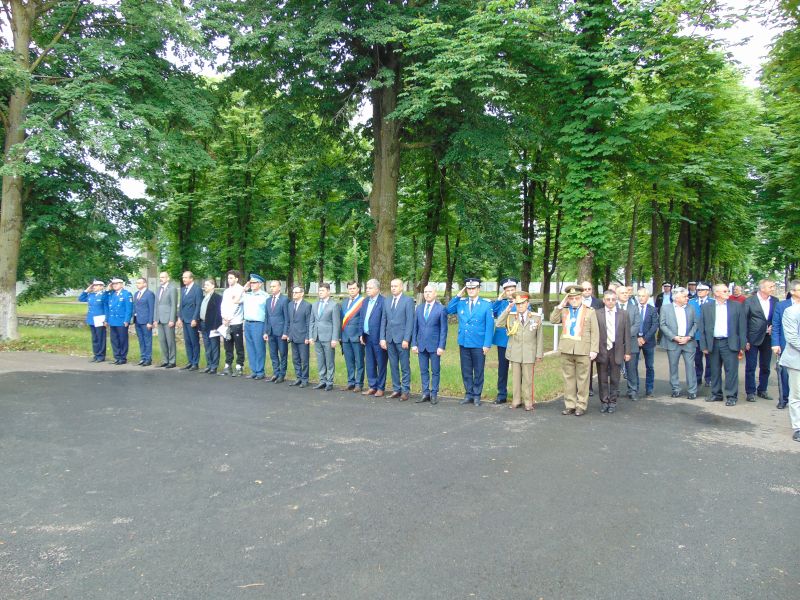 d)La ceremonialul militar-religios desfășurat în Piața prefecturii din Târgu-Jiu, delegația a fost alcătuită din: col. (rtr.) Ion C. Gociu, doamna Cornelia Gociu, col. ing. (r.) Ion Bâltoc, ec. Vlaicu-Popa Marius-Eremia, lt. col. (r.) Gheorghe Bușe și lt. col. (r.) Nicolae Bușe.