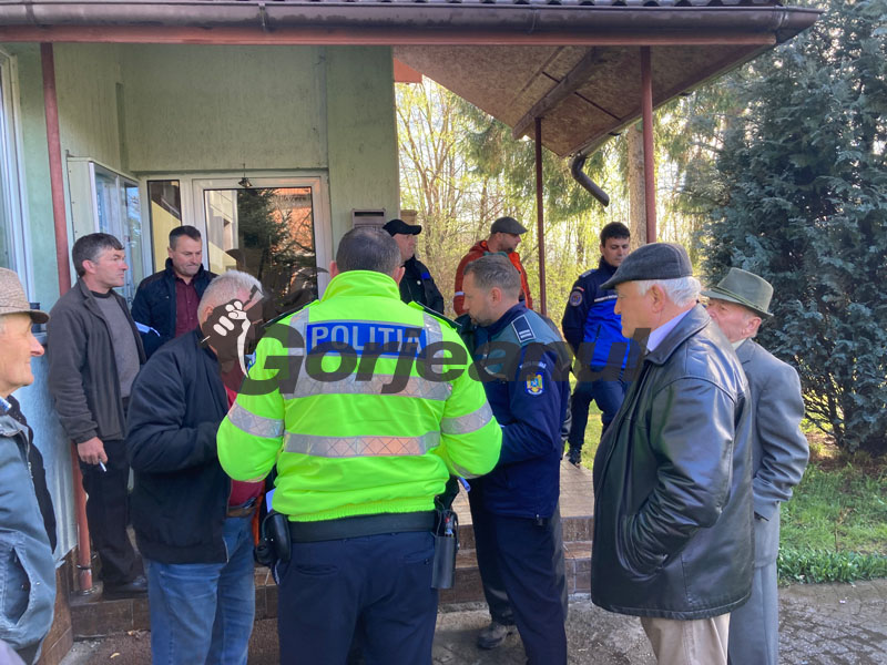 În mijlocul oamenilor, la un moment dat, și-au făcut apariția câțiva polițiști și jandarmi care au venit să vadă ce se întâmplă și dacă se produce vreun scandal sau altercație. Reprezentanții forțelor de ordine au fost primiți în sediul obștii, dar ușa a fost încuiată imediat după intrarea lor. La fel s-a întâmplat și după ieșirea acestora din sediu, jandarmii și polițiștii rămânând să discute cu nemulțumiții și pentru a mai calma spiritele. Oamenii și-au spus necazurile, deși erau conștienți că nu pot fi ajutați de forțele de ordine pentru a-l îndepărta pe Poenaru legal. „Pe 18 decembrie anul trecut am avut alegeri și oamenii nu l-au mai votat pe Poenaru. Dânsul a primit voturi de la 26 de persoane, iar noul președinte, care e aici cu noi, în curte, a avut 267 de voturi. Noi, după trei luni, azi nu putem să intrăm pe proprietatea noastră pentru a-l instala pe președintele pe care l-am ales. Nu vrea să predea ștampila, actele, documentele, cum se face în situații din acestea. Obștea este a 2850 de persoane, nu doar a lui Poenaru. El are un interes mârșav aici. La Adunarea Generală când l-am chemat a spus că el o să conducă obștea încă 2 3 ani de acum încolo.