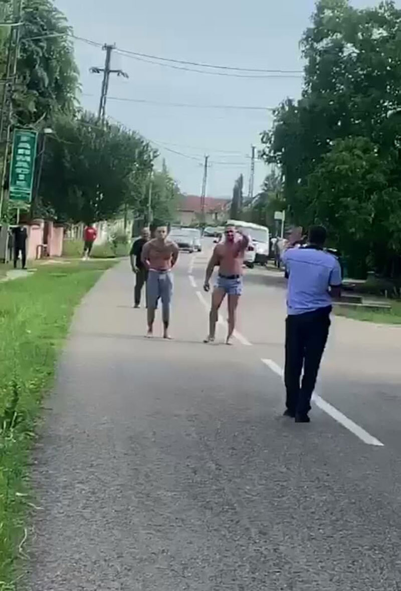 Cei doi tineri de 23 și 28 de ani, din județul Buzău, care au înjurat și amenințat polițiștii, duminică, în comuna Stănești, au fost arestați preventiv, luni, de magistrații Judecătoriei Târgu-Jiu. Aceștia au contestat decizia, urmând ca verdictul să fie stabilit la Tribunalul Gorj. Agresorii au venit în vizită la un tânăr din localitate, pentru a sărbători hramul satului. După ce au consumat alcool, cei doi musafiri ar fi mers la magazinul din localitate să ceară alcool și ar fi devenit agresivi, pentru că ar fi fost refuzați. ,,În jurul orei 16.30, pe fondul consumului de alcool și aflându-se în stare avansată de ebrietate, cei doi suspecți s-au deplasat la adresa persoanei vătămate, unde se afla și un magazin și au solicitat băuturi alcoolice. Una dintre persoanele vătămate, care este proprietara magazinului, a fost lovită și a necesitat 3-4 zile îngrijiri medicale. În apărarea acesteia a intervenit o altă persoană care a fost lovită de unul dintre suspecți și i s-au produs leziuni traumatice ce au necesitat pentru vindecare 3-4 zile de îngrijiri medicale. În raport de atitudinea celor doi suspecți, persoanele vătămate s-au retras în curte, unde se aflau mai mulți martori”, au precizat reprezentanții Parchetului de pe lângă Judecătoria Târgu-Jiu. La scurt timp, proprietara magazinului a sunat la 112 și a cerut sprijin. ,,Inițial, la fața locului a intervenit un echipaj din cadrul Postului de Poliție Runcu și Lelești, pentru a aplana acest conflict. Între timp, cei doi suspecți s-au retras la domiciliul unei alte persoane. În momentul în care a venit echipajul de Poliție, suspecții au ieșit din nou în stradă și au continuat să aibă aceeași atitudine recalcitrantă. În prezența organelor de Poliție au agresat fizic o altă persoană, care a fost lovită cu pumnii și cu paharul în zona capului și a toracelui. Persoana vătămată era căzută pe sol, iar agentul de Poliție a scos pistolul din dotare și l-a somat să înceteze activitatea infracțională. Suspectul a început să-i adreseze amenințări polițistului, cu acte de violență, împrejurare în care și celălalt agent de Poliție a scos pistolul, pe care îl avea asupra lui și a fost încătușat unul dintre suspecți”, au mai precizat reprezentanții Parchetului de pe lângă Judecătoria Târgu-Jiu. Totul a fost filmat de un martor. ,,Vrei să te bat cu pistolul în mână”, l-a întrebat unul dintre agresori pe agentul care avea pistolul îndreptat spre el. ,,Urmare a unui apel la 112, prin care se sesiza o stare conflictuală, un echipaj de poliție s-a deplasat la fața locului, reușind imobilizarea unui bărbat, moment în care mai multe persoane au intervenit pentru a-l scăpa. Imediat, polițiștii prezenți la fața locului au solicitat sprijin, astfel încât, spre localitatea respectivă, au fost redirecționate echipaje de ordine publică și ale Serviciului pentru Acțiuni Speciale. Cercetările continuă, sub aspectul săvârșirii infracțiunilor de lovire sau alte violențe, distrugere, tulburarea ordinii și liniștii publice și ultraj. Precizăm că, la momentul intervenției în cadrul unui eveniment, polițiștii acționează gradual si proporțional, scopul nostru fiind evitarea escaladării conflictului, prevenirea actelor de violență si foarte important, salvarea de vieți”, a declarat Victor Țuhașu, purtătorul de cuvânt al IPJ Gorj. Luni, mascații au descins la casa bărbatului din Stănești, la care au venit în vizită cei doi tineri din Buzău. Acesta este acuzat că i-a tăiat cătușele unuia dintre musafiri, fiind reținut și apoi arestat la domiciliu pentru favorizarea făptuitorului și distrugere.