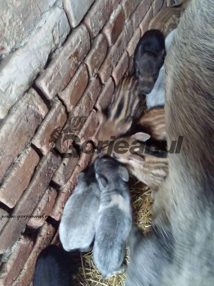 De câteva zile, un femier din Scoarţa este fericitul proprietar al unor purcei deosebiţi. Şase pui de mistreţ