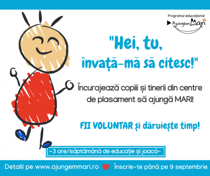 În centrele de plasament sunt mulţi copii şi adolescenţi care au nevoie de încurajare să înveţe şi să îşi găsească drumul în viaţă. Programul educaţional Ajungem MARI caută până pe 9 septembrie voluntari pentru 2.000 de copii din Bucureşti şi din 24 de judeţe. Prin programul Ajungem MARI voluntarii dăruiesc 3 ore pe săptămână pentru a deveni prieteni, profesori şi modele pentru copiii şi tinerii din centre sociale şi de plasament. În ţară sunt în prezent peste 19.000 de copii instituţionalizaţi, iar numărul personalului şi voluntarilor e insuficient. Voluntarii dăruiesc timp și primesc de la copii bucurie, zâmbete, îmbrătișări și lecții frumoase. Prin proiectul de voluntariat, în urma selecţiei şi a unui training iniţial, voluntarii susţin în centre, săptămânal, timp de cel puțin 6 luni, şedinţe interactive de pregătire şcolară, ateliere creative sau de cultură generală, punând mult accent pe încurajarea copiilor. Fiecare voluntar le transmite copiilor cunoştinţele lui, în funcţie de pasiuni şi abilităţi, de la română, matematică şi engleză, până la informatică, muzică, teatru, arte plastice, educaţie pentru sănătate sau financiară. Sunt căutaţi voluntari adulţi, dar şi tineri peste 16 ani, din orice domeniu, care să creadă în potenţialul copiilor, să îi înţeleagă şi asculte. Ajungem MARI caută 1.000 de voluntari în Bucureşti şi 24 de judeţe: Arad, Argeş, Bacău, Brăila, Bihor, Botoşani, Braşov, Buzău, Constanţa, Cluj, Dâmboviţa, Dolj, Galaţi, Hunedoara, Gorj, Iaşi, Ilfov, Mureş, Neamţ, Prahova, Sibiu, Suceava, Timiş, Vrancea.