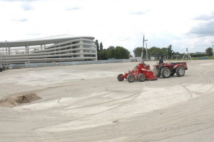 Oficialii clubului Pandurii Târgu-Jiu au demarat lucrările necesare la terenul doi din incinta Complexului Sportiv Municipal. Aici va fi aplicată o suprafaţă de iarbă sintetică, iar conducerea echipei speră să-i înduplece pe reprezentanţii Federaţiei Române de Fotbal ca meciurile pandurilor de acasă să se deşfăsoare pe “noul” teren. “Recent conducerea clubului Pandurii a luat decizia de a face demersurile necesare pentru reamenajarea acestui teren ca teren cu iarbă sintetică, unul care să corespundă standardelor impuse de FRF pentru a putea fi omologat pentru meciuri oficiale. Un prim pas a fost obţinerea avizului de la Ministerul Finanţelor pentru a se putea utiliza rolele de iarbă sintetică depozitate în incinta Complexului Sportiv de cinci ani, al doilea pas fiind refacerea suprafeţei terenului pentru a se putea monta apoi covorul sintetic. După ce, la finalul săptămânii trecute, a fost distribuit pe suprafaţa terenului material de completare pentru drenajul terenului, în cursul săptămânii s-a lucrat la nivelarea terenului cu nisipul care a fost adus încă din weekend. Pentru ca apa să se poată scurge rapid de pe teren în cazul ploilor abundente s-a folosit o tehnologie modernă cu laser şi un tractor cu greder-laser, închiriat special pentru amenajarea acestei suprafeţe. După ce în cursul săptămânii angajaţii Direcţiei de Patrimoniu au lucrat la amenajarea spaţiilor adiacente terenului doi, garduri şi tribună, precum şi la curăţirea rigolelor de scurgere a apei din jurul terenului, s-a trecut la pregătirea suprafeţei pe care va fi montat covorul sintetic. În acest weekend s-a lucrat intens pentru definitivarea suprafeţei, următoarea etapă care va începe în curând fiind întinderea rolelor de covor sintetic şi lipirea acestuia pe o folie specială”, se arată pe site-ul oficial al formaţiei, panduriics.ro. Terenul doi a fost printre primele terenuri sintetice din România de dimensiuni normale – omologat pentru meciuri oficiale de Liga a treia şi de juniori, aici disputând meciurile din campionat fosta echipă a doua a clubului Pandurii. “Sinteticul” a fost dezafectat în anul 2015 de fosta conducere a clubului care anunţase amenajarea unui teren cu iarba naturală, dar lucrările la acesta nu au mai fost demarate. Clubul Pandurii achiziţionase, încă din anul 2013, rulouri de iarbă sintetică pentru a înlocui vechea suprafaţă de joc parţial afectată de antrenamentele şi jocurile disputate acolo de sute de fotbalişti, juniori şi copii, însă acestea nu s-au mai montat. Suprafaţa terenului doi, decopertată de iarba sintetică de peste trei ani, s-a denivelat între timp fiind folosită ca parcare auto timp de doi ani. De asemenea, maşinile de mare tonaj care au lucrat la Sala Sporturilor au amplificat deteriorarea.
