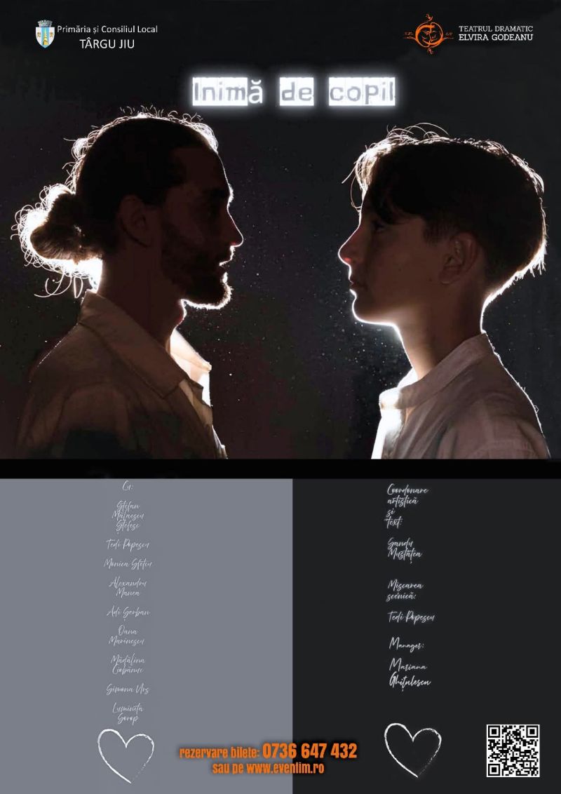Noua stagiune își propune să transforme teatrul într-un spațiu al culturii și al întâlnirii publicului cu creatorii, un loc unde arta îmbogățește sufletește și apropie comunitatea. Biletele pentru „Inimă de copil” pot fi achiziționate online, accesând Eventim sau de la agenția teatrală. Rezervările se pot face la numărul de telefon 0736.647.432. Teatrul Dramatic „Elvira Godeanu” Târgu Jiu așteaptă cu drag publicul să participe la deschiderea stagiunii și să fie parte din experiențele artistice ce urmează.