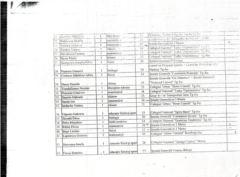 Alăturat se află tabelul nominal cu aprobarea Inspectoratului Judeţean Gorj din care reiese că sunt pe locul 4 al acestui tabel.