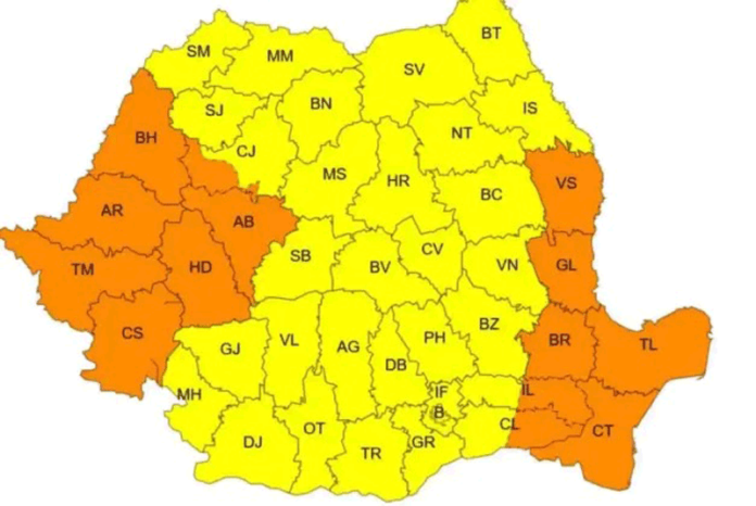 Avertizarea este valabilă din această dimineață de joi, 13 martie, ora 02:00 şi până sâmbătă, 15 martie, ora 18.00. În această perioadă vor fi averse în cea mai mare parte a ţării, iar joi, în estul şi vestul ţării vor fi rafale de vânt de 70…85 km/h, iar în zona montană înaltă, de peste 120 km/h. Gorjul se află în zona cu avertizare galbenă, dar în vecinătatea sa, pe hartă, se află județe aflate sub cod portocaliu, ceea ce arată că vremea nu va fi una plăcută. Conform meteorologilor, în intervalul menţionat vor fi averse în cea mai mare parte a ţării, pe alocuri însoţite de descărcări electrice, iar îndeosebi în Carpaţii Occidentali, nordul Carpaţilor Orientali, vestul Carpaţilor Meridionali şi în nordul Olteniei, în intervale scurte de timp sau prin acumulare, vor fi cantităţi de apă de 15…25 l/mp şi local de peste 40 l/mp. Izolat va cădea grindină. Pe parcursul acestei zile vor fi intensificări ale vântului în toate regiunile, cu viteze mai mari în vest, est şi sud-est, precum şi la munte, iar vineri şi sâmbătă în special în zonele de munte şi în vestul şi centrul teritoriului. De altfel, meteorologii au emis, pentru ziua de azi între orele 06.00 – 22.00 cod galben de vânt puternic şi vijelii. Astfel, pe parcursul acestei zile, vântul va avea intensificări în toată ţara, cu viteze de 50…60 km/h, iar local de 65…70 km/h. Pe alocuri se vor semnala vijelii. În zona montană înaltă, în general la altitudini mai mari de 1700 m, rafalele vor depăşi 90…110 km/h.