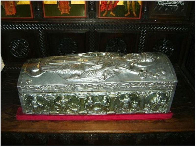 Sfântul voievod Neagoe Basarab a poruncit să fie puse sfintele moaște într-o raclă de argint, poleită cu aur și pietre prețioase și să le ducă înapoi în Sfântul Munte. Văzând frații și părinții monahi din acea mânăstire adânca evlavie a voievodului român, i-au dăruit capul Sfântului ierarh Nifon și o mână a sa. Zidind capodopera arhitecturii românești, Catedrala de la Curtea de Argeș, sfântul voievod Neagoe Basarab a așezat aici sfintele moaște ale ocrotitorului Olteniei și părintelui său duhovnicesc.