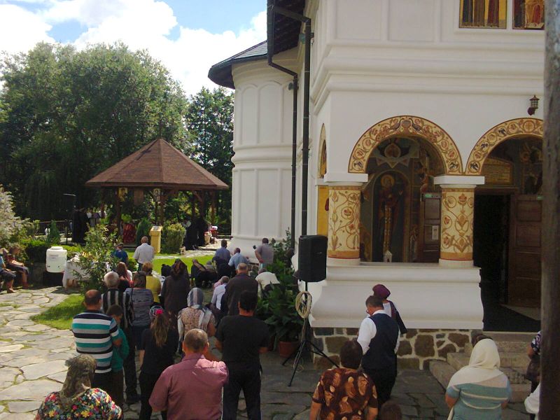 În această zi binecuvântată a Hramului «Sfinţilor Apostoli Petru şi Pavel», să amintim că miercuri, 24 iunie 2020, de Sărbătoarea Naşterea «Sfântului Ioan Botezătorul», numită în popor «Sânzienele» sau «Drăgaica», la Sfânta Mănăstire «Icoana», din Comuna Crasna, Protopopiatul Târgu- Cărbuneşti, cu binecuvântarea Înaltpreasfinţitului Părinte dr. Irineu, Arhiepiscopul Craiovei şi Mitropolitul Olteniei, în altarul de vară a fost săvârşită Sfânta Liturghie de către un sobor ales de preoţi şi diaconi în frunte cu Preacuviosul Părinte Exarh, Ioachim Pârvulescu, Stareţul Mănăstirii Lainici, Preacucernicul Părinte Protopop al Protopopiatului Târgu-Cărbuneşti, Pr. Iulian Mărgineanu şi Preacucernicul Părinte Protopop, Pr. Ioan Popescu, slujitor de altar la Biserica «Icoana» din Bucureşti! În pofida restricţiilor pandemice, în curtea mănăstirii au fost prezenţi destui credincioşi, respectând condiţiile impuse de către situaţia existentă! La sfârşitul slujbei a fost săvârşit parastasul de pomenire a Sf. Ioan Botezătorul şi a ctitorilor mănăstirii, iar răspunsurile la strană au fost date de către tinerii Grupului Psaltic al Catedralei Mitropolitane «Sfântul Mare Muc. Dimitrie», din Craiova! Asistenţa tehnică a transmiterii slujbei a fost realizată de către d-l Ionuţ Cosmin Stanciu, de la Mitropolia Olteniei! Buna desfăşurare a sfintei slujbe a fost asigurată de către Maica Stareţă a mănăstirii, Preacuvioasa Teodora Ilie Stavrofora şi de către Maica Stareţă Fevronia Nuţă Stavrofora, de la Mănăstirea Târgu-Logreşti, împreună cu maicile rugătoare ale sfântului lăcaş, cu ajutorul binevoitorilor mănăstirii!