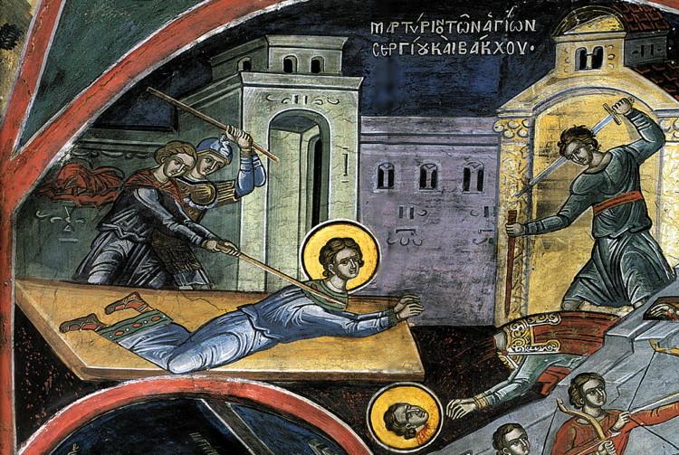 Zi de sărbătoare cu cruce roşie în calendar, 7 octombrie este data la care marii mucenici Serghie şi Vah şi-au dat viaţa pentru credința în Hristos şi au pătimit moarte mucenicească din dragoste de Dumnezeu şi de oameni; sfinţii au trăit în vremea împăratului Maximian (286-305). Chiar dacă erau tineri, împăratul le-a acordat funcții înalte în Şcoala Centiliilor: Serghie a fost “primicer” (primicer este acela al cărui nume este scris primul pe lista oficial recunoscută a conducătorilor, așadar persoană marcantă prima înscrisă) şi Vah “secundicer” (secundicer este acela care se află al doilea într-o castă). Şcoala Centiliilor, constituită pe vremea lui Diocleţian, a format diviziuni de elită ale armatei romane, care îndeplineau ordinele împăratului însuşi şi funcţionau de asemenea în calitate de corp de instruire a ofiţerilor. Mai târziu, aceste diviziuni de elită au fost transformate în gardă imperială şi detașament de onoare. Ei erau creştini în ascuns, căci împăratul era un persecutor al creştinilor. Au fost descoperiți lui Maximian că se închinau lui Hristos, motiv pentru care li s-a cerut să jertfească idolilor. Aceştia, refuzând să aducă jertfe zeilor, au fost lipsiţi de însemnele demnităţii militare, îmbrăcaţi în haine femeieşti şi purtaţi prin cetate, în semn de batjocură. Pentru că nu au lepădat credinţa în Hristos nici după această batjocorire, au fost duşi în cetatea Varvalisa, spre a fi supuși chinurilor de împăratul Antioh. În drum spre această cetate, li s-a descoperit îngerul şi le-a vestit că “Pentru nevoinţa voastră veţi lua cununile biruinţei de la Domnul Iisus Hristos, Care va fi alături de voi în suferinţa voastră, dându-vă ajutorul Său până ce îl veţi călca pe vrăjmaşul diavol sub picioarele voastre“. În această cetate, Sfântul Vah şi-a dat duhul în urma torturilor, iar Sfântul Serghie a fost decapitat.