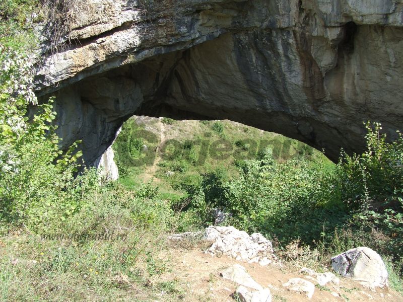 Într-una din ele, se povesteşte că în trecut pe aceste meleaguri trăiau oameni uriaşi, care dacă ar fi trăit astăzi ne-ar fi înspăimântat cu puterea lor şi că podul ar fi opera acestor giganţi denumiţi pelasgi.