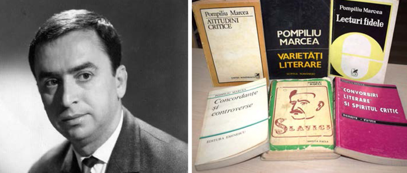 Mi-am început pledoaria pentru manifestarea ilustrei și eroicei sale figuri de tragică experiență intelectuală și morală cu transmiterea salutului Filialei Alb-Hunedoara a Uniunii Scriitorilor din România și a Consiliului Director al U.S.R., dar și al actualei conduceri a revistei „România Literară”, al cărei colaborator a fost, ani la rând, Pompiliu Marcea. Posed o colecție din acea epocă și zilele astea am răsfoit-o preocupat de redactarea lucrării mele dedicată simpozionului, care anul acesta s-a bazat pe evocarea în speță a lui Mihai Eminescu văzut și reconsiderat de Pompiliu Marcea. Rolul meu în acest context a trebuit să acopere o plajă mai largă: începând cu două trei informații la ordinea de zi și terminând cu lecturarea propriului meu text. Prima informație: că în volumul din „Un dicționar al scriitorilor români contemporani (IX), ediția a II-a revizuită) coordonat de Ioan Holban, Aurel Ștefanachi și de mine pe zona Olteniei – n.m.) l-am publicat pe Pompiliu Marcea (vezi pp. 173-182), portretele fiind semnate de Ion Marcea, Valeriu Râpeanu și de Ion Popescu-Brădiceni). A doua informație că în „Portal Măiastra” nr.3 / 2022, scriitorul Zenovie Cârlugea a comentat romanul lui Pompiliu Marcea: Pacient în Galapagos (vezi pp. 20-26), roman scris în 1983, cu doar 1 an și 3 luni înaintea morții sale, o scriere-mărturisire, oarecum terapeutică, esopică, poliedrică, având un motto scos din Nicolae Iorga; „Să nu crezi în poveștile de vitejie ale ostașului care nu le poate pecetlui cu rănile sale”. Un „homo novus” al epocii sale, Pompiliu Marcea (cu o stea pe aleea celebrităților Târgu-Jiu), dedublat romanesc de filosoful, colonelul, părintele și naratorul Adrian Ionescu își susțin propriile concepții, nelipsindu-le acel demon al contradicției, venind vorba despre dictatori și tirani (ca de pildă cei din „Toamna patriarhului”, al lui G.M. Marquez din Racul, capodoperă a lui Al. Ivasiuc din 1976. Mi-am închis cochetul discurs, savant de bună seamă, de-o manieră hermeneutică, cu reamintirea despre cartea „Pompiliu Marcea – 90 de ani de la naștere” apărută la Editura Pim de la Iași (autori: Mircea Ganea, Ion Marcea, Constantin Ganea, Ion Popescu-Brădiceni) având pe coperta IV un moto iarăși specific lui Pompiliu Marcea: „Condiția supremă a marilor realizări este martirajul. În fiecare mare creator trăiește un Meșter Manole”. Între 1961 și 1985 lui Pompiliu Marcea i s-au tipărit 14 cărți apoi altele două i-au apărut postum. Destule articole au rămas risipite prin presa literară din cele două decenii de „liberalizare” a epocii lui Nicolae Ceaușescu. După cum se știe el a fost omorât, cu mârșăvie, precum Marin Preda, Ion Lotreanu ș.a. Opera lui, deloc vastă, nu s-a bucurat îndeajuns de prestigiul pe care l-ar merita. Încet-încet a fost pus la index de istoriile literare contemporane. Păcat. Greu păcat. Și de neiertat.