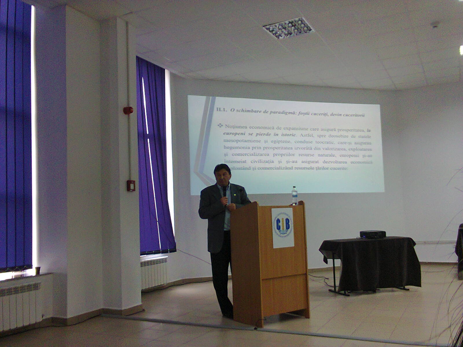 Încă de la începutul simpozionului de la Tg. Jiu, moderatorul programului, domnul prof. univ. dr. Adrian Gorun a pornit de la ideea că: “Societatea actuală – cea care parcurge era globalizării – este acceptată ca o societate a cunoaşterii, iar evenimentele Fotografie0454ce se multiplică ne arată că populaţia din toate ţările «lumii a treia», dar şi din state dezvoltate din Asia creşte exponenţial, în timp ce populaţia ţărilor modernizate scade dramatic, rezervele naturale se diminuează vertiginos, mai ales că bunăstarea este o realitate pentru eşantioane din ce în ce mai restrânse, în timp ce sărăcia se extinde tot mai mult, iar analfabetismul se cronicizează! Prin urmare, lumea nu este nici pe departe, aşa cum pare, diferenţele dintre aparenţe şi esenţă fiind majore. Echilibrul – în condiţiile în care globalizarea ridică competiţia la scară mondială – este unul aproximativ, mai ales că nevoia contextului global în analiza factuală a problemelor majore ale lumii secolului al XXI-lea este imanentă. Se impune, așadar, ca abordarea realistă asupra problemelor majore ale lumii de azi să elimine patetismele, indiferent de ce parte s-ar situa, pentru că nici exacerbările, nici minimalizările nu produc soluţii adecvate. Atât încriminarea în bloc a migraţiei/refugiului, cât şi încurajarea nelimitată şi asumarea declarativă sunt dăunătoare, iar o neutralitate axiologică suprapusă peste obiectivitatea ştiinţifică reprezintă soluţia adecvată la problemă, în condițiile în care Fotografie0455asistăm la o schimbare de paradigmă, când foştii cuceriţi devin cuceritori! În multe privințe, a încheiat moderatorul simpozionului, consecințele sunt îngrijorătoare, concretizate prin faptul că explozia demografică depăşeşte cu mult nevoile de forţă de muncă, nevoi aflate în scădere vertiginoasă, urmare şi a utilizării tehnologiilor avansate, suprapopularea ţărilor sărace este mai devastatoare decât toate războaiele mondiale la un loc, marile probleme ale lumii abia acum încep, chiar dacă omenirea s-a confruntat, de-a lungul existenţei cu nenumărate crize, în ultimă instanță, asistăm la pierderea identității Europei și la accentuarea pericolului musulmanizării, care erodează pilonii civilizaţiei și îi distruge identitatea”!