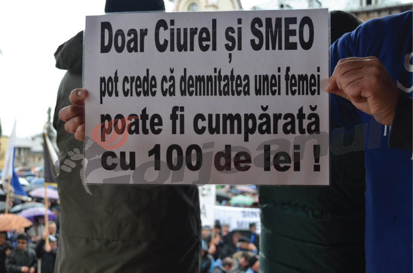 Doar Ciurel şi SMEO cred că demnitatea unei femei poate fi cumpărată cu o sută de lei. Acestea fac referire la faptul că administraţia a condiţionat prima de Ziua Femeii, de 100 de lei, de înscrierea în sindicatele care au semnat acordul ce permite concedierile.