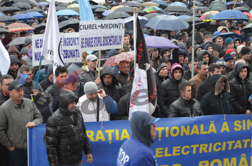 Semnarea acordului care ţine loc de CCM nu i-a oprit pe sindicaliştii de la FNME şi de la Univers să iasă, ieri, în număr mare în Piaţa Prefecturii, în ciuda frigului pătrunzător şi a ploii reci. În jur de 4000 de protestatari au solicitat iar, în piaţă, demisia managerului CEO, Laurenţiu Ciurel, revoltându-se atât împotriva ITM, cât şi a prefectului de Gorj, Alin Văcaru, care nu reacţionează la doleanţele sindicaliştilor. În piaţă au fost huliţi liderii trădători, adică cei zece sindicalişti, care şi-au pus semnăturile pe acordul lui Laurenţiu Ciurel. La miting s-a strigat “Hoţii”, “Demisia” şi “Jos Mafia”. Sindicalistele au fost şi ele solidare cu colegii lor, demonstrându-le că le stau alături chiar dacă, trecând la alt sindicat, ar fi primit o primă de 100 de lei, de Ziua Femeii.
