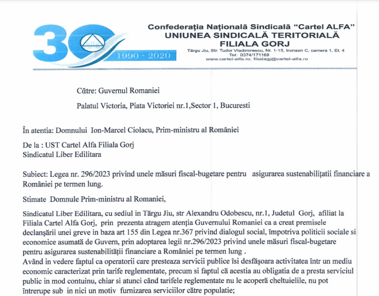 În sprijinul salariaților Edilitara vine și Sindicatul Cartel-Alfa care anunță că dacă situația nu se va remedia, vor fi conflicte de muncă. Organizația a anunțat că a cerut guvernului o întâlnire pentru a găsi împreună soluțiile care vor salva serviciul public.