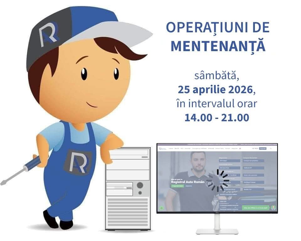 Registrul Auto Român (RAR) a anunțat că site-ul instituției, www.rarom.ro, nu va fi funcțional sâmbătă, 25 aprilie 2026, în intervalul orar 14:00 – 21:00, din cauza unor lucrări de mentenanță programate.