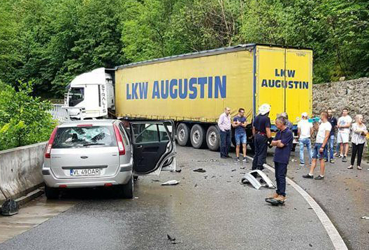 Două persoane, soț și soție, au fost rănite, duminică, după ce mașina în care se aflau s-a ciocnit de un tir, pe Defileul Jiului. Un bătrân de 72 de ani a intrat cu autoturismul pe contrasens, iar șoferul autotrenului nu a mai putut evita impactul. „ISU Gorj a fost solicitat să intervină la o situație de urgență generată de un accident rutier produs la intrare pe Defileul Jiului, zona Vișina, în care au fost implicate un autoturism și un autotren. La fața locului s-au deplasat un echipaj pentru descarcerare din cadrul Gărzii de Intervenție Bumbești-Jiu, două echipaje din cadrul SAJ, precum și echipaje ale IPJ, care au constatat că, în urma impactului, au rezultat două victime care nu erau încarcerate: un bărbat în vârstă de 72 de ani și o femeie în vârstă de 69 de ani”, a declarat Florin Chisim, purtătorul de cuvânt al ISU Gorj.