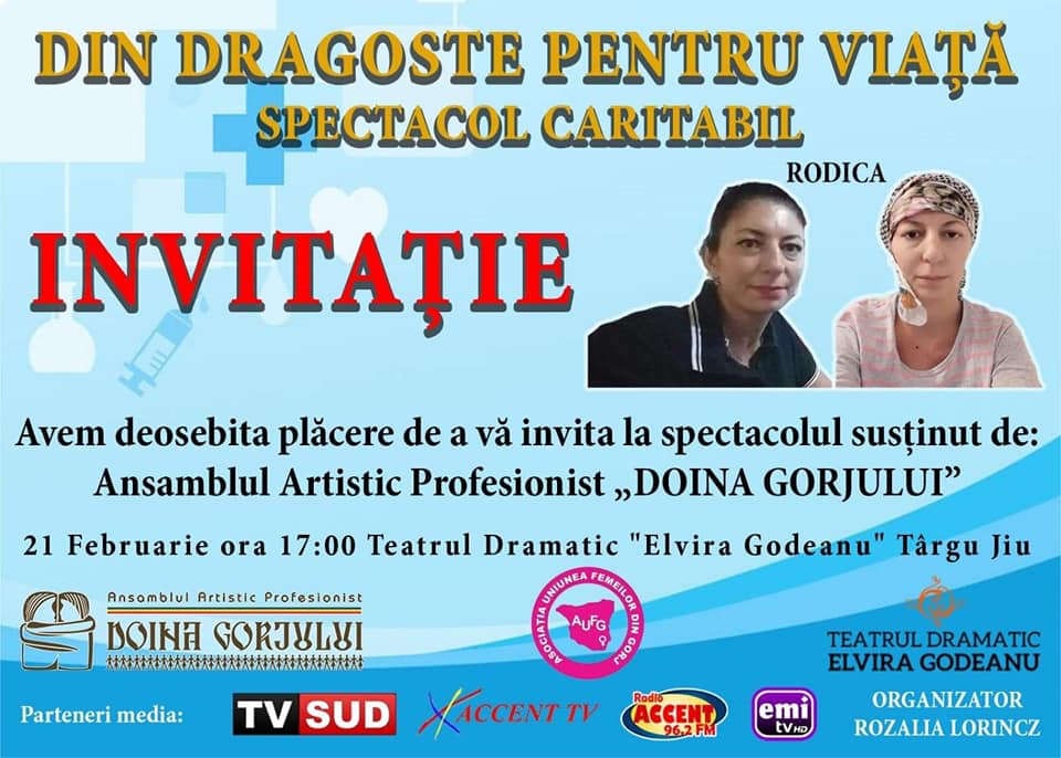 Spectacol caritabil, la Târgu Jiu, pe 21 februarie