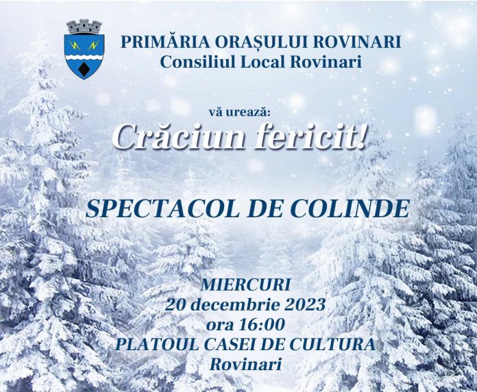 ”Primăria orașului Rovinari vă așteaptă cu drag la un minunat spectacol de colinde pe platoul Casei de Cultură, în data de 20 decembrie 2023, începând cu ora 16:00. Emoția și frumusețea colindelor tradiționale vor fi aduse în scenă de către talentații elevi de la Școala Generală Nr. 1, Școala Generală Nr. 3 și Ansamblul Jiulețul. Haideți să ne reunim în această atmosferă festivă și să sărbătorim împreună spiritul sărbătorilor de iarnă!”, a transmis primarul orașului Rovinari, Robert Filip.