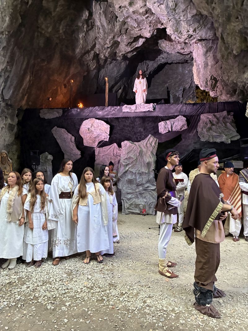Chiar am tresărit pentru că eram cu nepoțica și m-am gândit la faptul că poate vede și ea și se sperie cumva, dar mai mult m-am speriat eu. Chiar am crezut o clipă că băiatul acela, actorul cel tânăr, s-a aruncat în gol”, a spus o turistă venită din Craiova. Iar părerile despre spectacolul jucat la Peștera Polovragi au fost pozitive din partea celor care au urmărit piesa. „A fost impresionant, foarte frumos. Un astfel de spectacol spiritual într-un mediu natural la intrarea în peștera Polovragi e ceva fantastic. Am plecat din Târgu Jiu pentru o plimbare în natură și am nimerit aici și ne bucurăm că am ajuns în seara aceasta la un astfel de spectacol care cred că ar trebui jucat mai des”, a spus un alt turist.