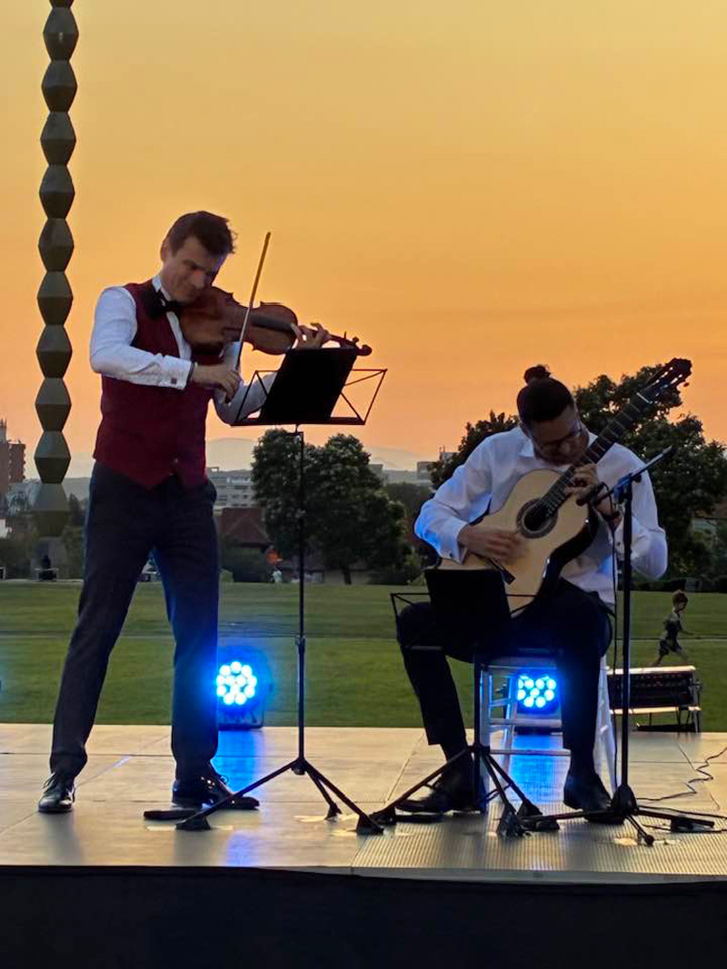 Au fost două seri magice în parcul Coloanei Infinitului și la Hobița, la casa în care s-a născut și a crescut Constantin Brâncuși. Turneul Stradivarius a ajuns aici, Alexandru Tomescu având ocazia să concerteze din nou cu vioara Stradivarius, la doar câteva zile după ce a cântat chiar în Capela Sixtină, în fața Papei Leon al XIV-lea.