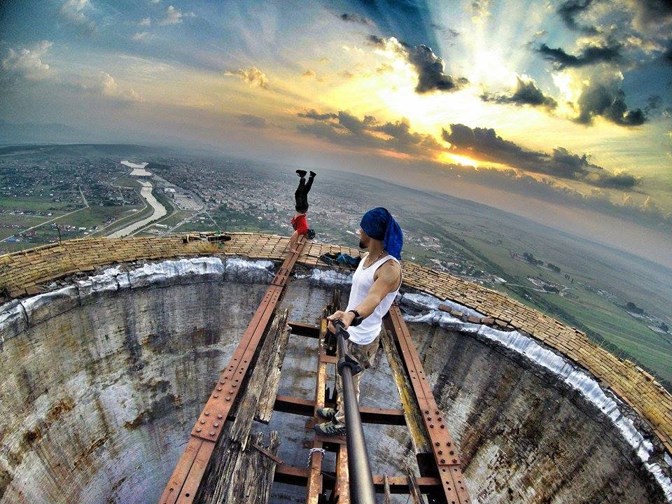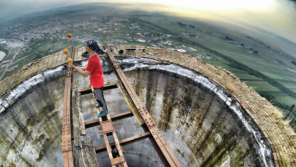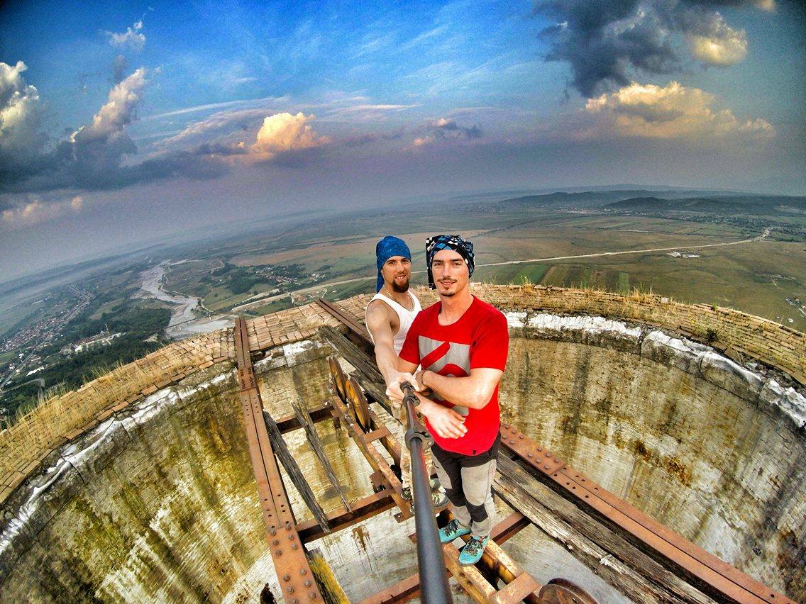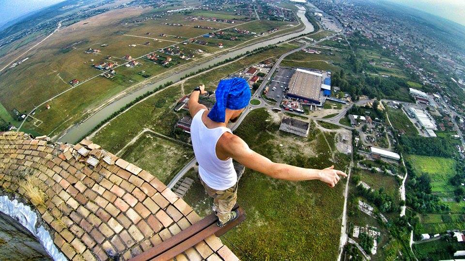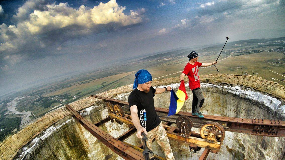 Marius, tânărul de 23 de ani, din Cluj, care a făcut furori pe internet, după ce s-a urcat pe un turn înalt de peste 250 de metri, s-a întors în weekend la Târgu-Jiu. De această dată, bărbatul care străbate țara în lung și în lat cu tirul nu a urcat singur pe clădire, ci alături de Flaviu Cernescu, un timișorean pasionat de sporturi extreme. Cei doi au fluturat drapelul României , iar Marius s-a filmat în timp ce stătea agăţat într-o mână la peste 250 de metri înălţime, fără nicio măsură de securitate. Imaginile surprinse de cameră sunt de-a dreptul incredibile. La un moment dat se observă cum un lemn cade în gol, însă clujeanul nu și-a pierdut concentrarea. Ca și nu ar fi fost de ajuns, ”Spiderman de România” a mers și mai departe cu demonstrațiile spectaculoase.