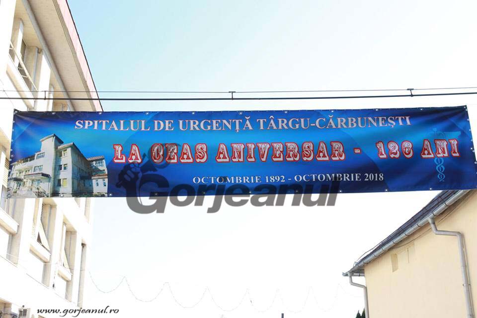 În acest weekend, Spitalul Orăşenesc de Urgenţă Târgu-Cărbuneşti a sărbătorit 126 de ani de existenţă. La festivitatea aniversară au participat medici, reprezentanţi ai autorităţilor publice locale şi judeţene, prefectul Ciprian Florescu, conducerea Colegiului Medicilor Gorj, precum şi alţi invitaţi.