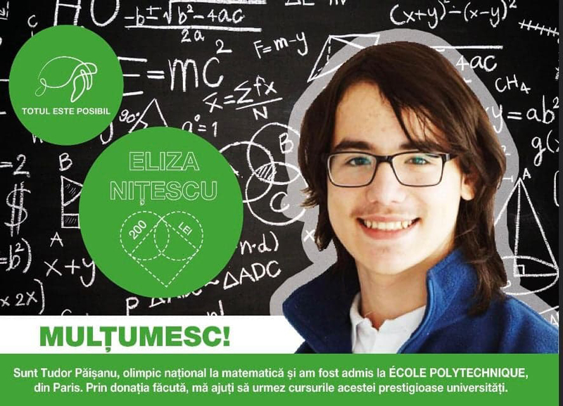 SUSȚINE UN MATEMATICIAN EMINENT! card: https://tinyurl.com/TUDOR-PAISANU cont: RO36BTRLRONCRT0386479601 cu mențiunea: TUDOR PĂIȘANU”, se arată pe pagina de socializare a tânărului gorjean.