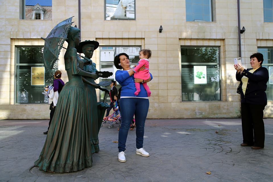 Ediţia din acest an a Festivalului Toamnei, organizat în lipsa Teodorei Ciobanu, aflată sub control judiciar la domiciliu, a fost deosebită, dacă ne gândim că acum s-au adus în centrul vechi al oraşului câteva statui de ipsos, întruchipând personaje interbelice, care păreau aproape reale.