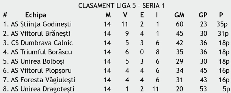 Mai este puțin până la încheierea competițiilor de seniori în fotbalul din Gorj. Deja Seria 1 din Liga 5 și-a desemnat câștigătoarea: Ştiința Godinești.