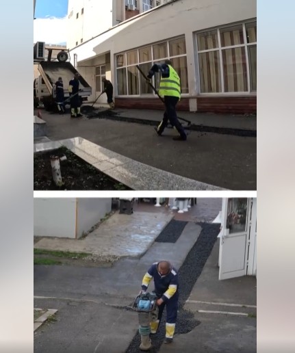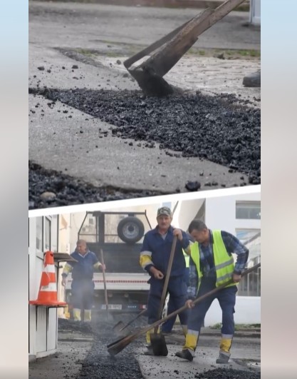 „Echipele Edilitara – Reparații Străzi intervin în aceste zile pentru refacerea carosabilului și trotuarelor afectate de lucrările executate de S.C. Electroconstrucția ELCO Târgu Jiu S.A., în cadrul proiectului «Creșterea eficienței energetice și a gradului de siguranță în exploatarea rețelei de distribuție din municipiul Târgu Jiu, prin modernizarea, trecerea instalațiilor și echipamentelor ce funcționează la tensiunea de 6 kV la o tensiune superioară de 20 kV și integrarea acestora în sistemul SCADA».
