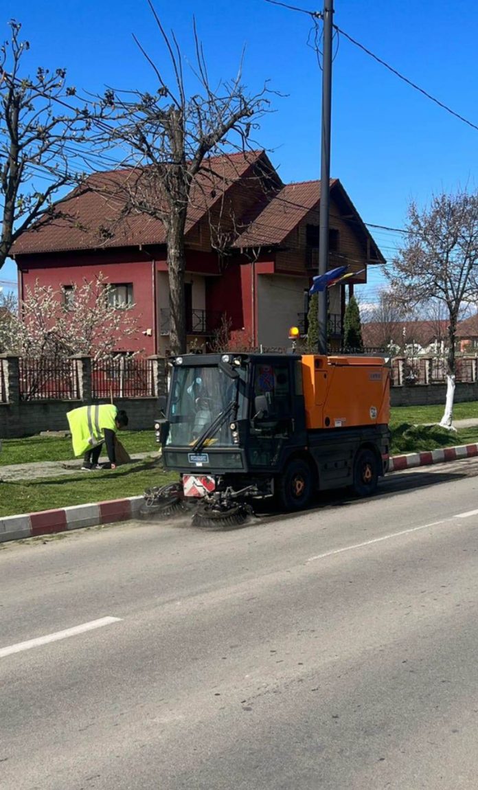 Miercuri a fost văzută pe străzile din Motru o mașină de măturat care adună praful și resturile de pe marginea drumului, în același timp stropind pentru a evita ridicarea prafului.