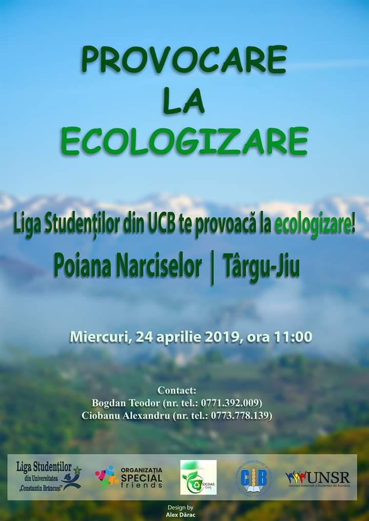 Liga Studentilor din Universitatea „Constantin Brancusi” Târgu Jiu organizeaza saptamana viitoare, pe 24 aprilie, de la ora 11:00, o ampla actiune de curatare de deseuri a Poianei Narciselor.