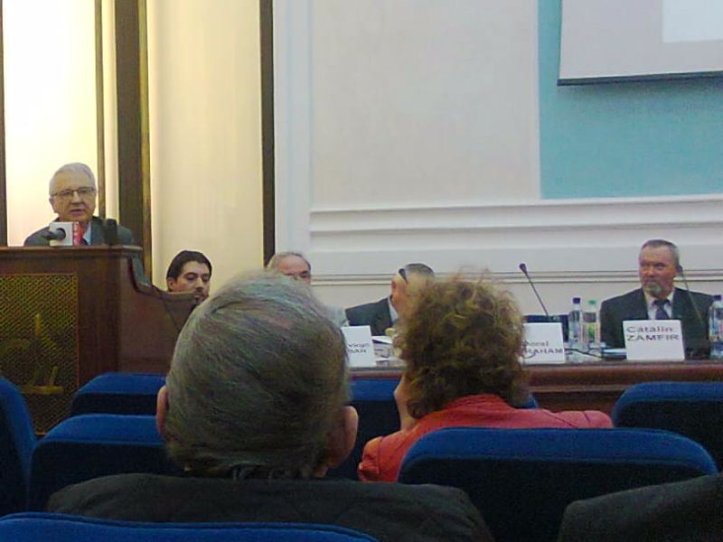 În cadrul lucrărilor în plen au fost prezentate o serie de teme de mare actualitate, dintre care am reținut pe cea intitulată: “Criza tranziției: noi provocări pentru sociologie”, a prof. univ. acad. dr. Cătălin Zamfir, vicepreședinte al Asociației Sociologilor din România, director al Institutului de Cercetare a Calității Vieții, care a spus printre altele: “A gândi despre sociologia românească are o semnificație cu totul deosebită de alte domenii; dacă vorbim, de exemplu, despre fizica românească, are o semnificație foarte