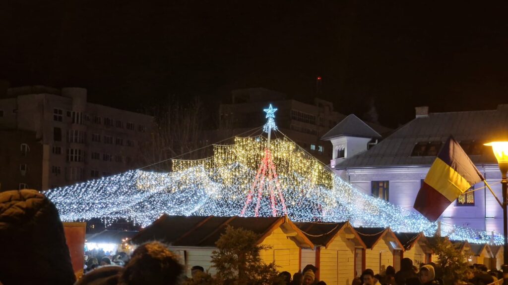 La ora 18:00, olimpicul internațional Mario Scurtu a fost cel care a aprins iluminatul de sărbători, după un discurs emoționant prin care i-a îndemnat pe tineri să învețe și sa nu-și uite niciodată originile.