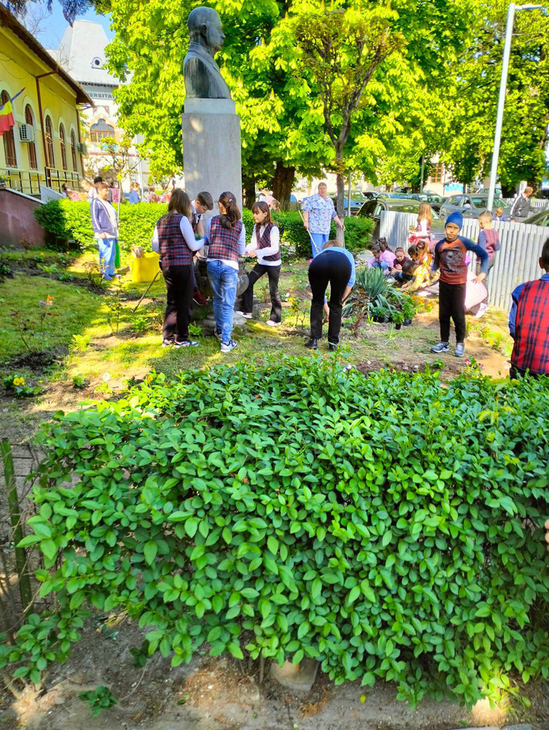 De aceea, vineri, elevii claselor primare din toate școlile partenere au ieșit să ecologizeze perimetrul din zona școlii, să planteze flori în spațiile verzi și răsaduri de puieți de brad, expunând și afișe, desene pe această temă.