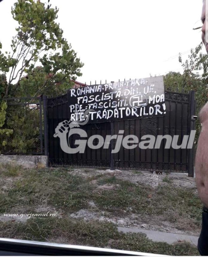 Un pensionar din satul Moșteni, comuna Logrești, și-a afișat pe poarta casei o pancartă negră pe care a scris cu alb și cu majuscule: ,,România, prima țară fascistă din UE! PPE=Fascinști” și ,,Moarte trădătorilor”, la mijlocul textului fiind creionată și svastica, însemnul nazist. Polițiștii i-au întocmit septuagenarului dosar penal, în cauză efectuîndu-se cercetări sub supravegherea unui procuror din cadrul Parchetului de pe lângă Judecătoria Târgu Cărbunești, pentru săvârșirea infracțiunii de utilizarea în public a simbolurilor fasciste, legionare, rasiste sau xenofobe.