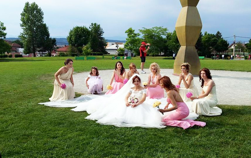 Nunta de sâmbătă a fost condimentată cu muzică de calitate, lume bună, ţinute scumpe şi chiar cu momente filmate cu cei doi miri, proiectate în piscina luxosului spaţiu de agrement. Însă, până la petrecere, mireasa s-a fotografiat cu apropiaţii în cunoscutele locaţii din Târgu-Jiu, vremea fiind excelentă pentru poze. De altfel, mirii aveau ce arăta, fiind tineri şi frumoşi şi gata pregătiţi de viaţa de familie.