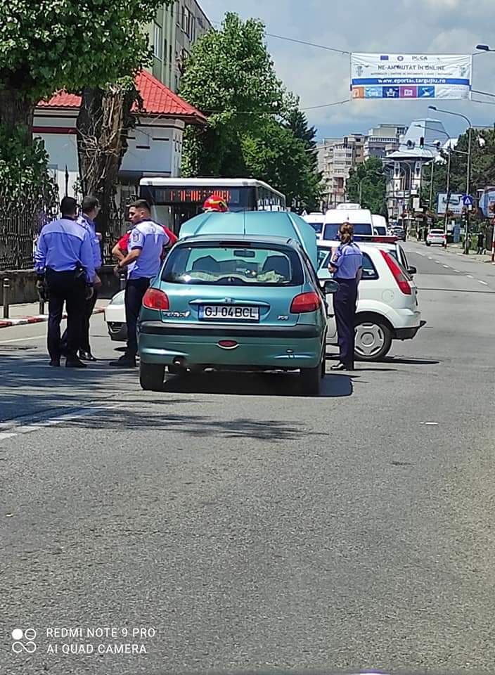 Tamponarea la intrarea pe Pasarelă, în Târgu-Jiu
