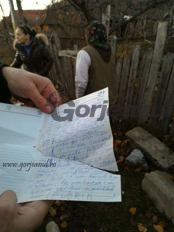 Surse susţin că, în biletul de adio, Florin l-ar fi rugat pe fratele său să dea numele lui copilului pe care îl va avea. “Dragii mei, îmi pare bine că aţi scăpat de mine, pentru că v-am făcut numai rele şi v-am făcut de râs. (…) Neluțu, fă un copil cu Liliana, să-i pui numele meu, Florin!”, ar fi scris acesta. Bărbatul era beneficiar de ajutor social.
